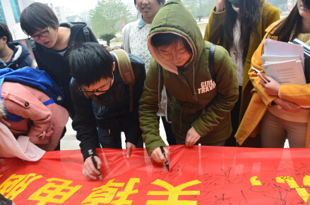 会议伊始,唐星星公布了11月份班级考核评比前三名及后三名。她对排名靠前的班级给予了充分肯定,并希望考核排名不理想的班级能够不断改正班上存在的问题,让班级常规工作运行得越来越好。二是针对本周末将举行的国家英语三四六级考试,唐星星重点为大家解读《刑法(修正案九)》中关于考试作弊已入刑的有关规定,强调诚信考试;三是期考临近,为了进一步强化公司学风建设,唐星星围绕“放下手机,关掉电脑,走进教室,走上操场,实现零挂科”这一主题,号召同学们做好考前复习工作,积极备考,切忌投机取巧,存在侥幸心理。紧接着黄自力发表讲话,她希望同学们能够积极响应学办老师的号召,在思想上和行动上都高度重视期末考试,并树立诚信参考的观念。最后,同学们在团总支员工会的组织下有序在主题横幅上签名,以表明自己诚信参考的决心。