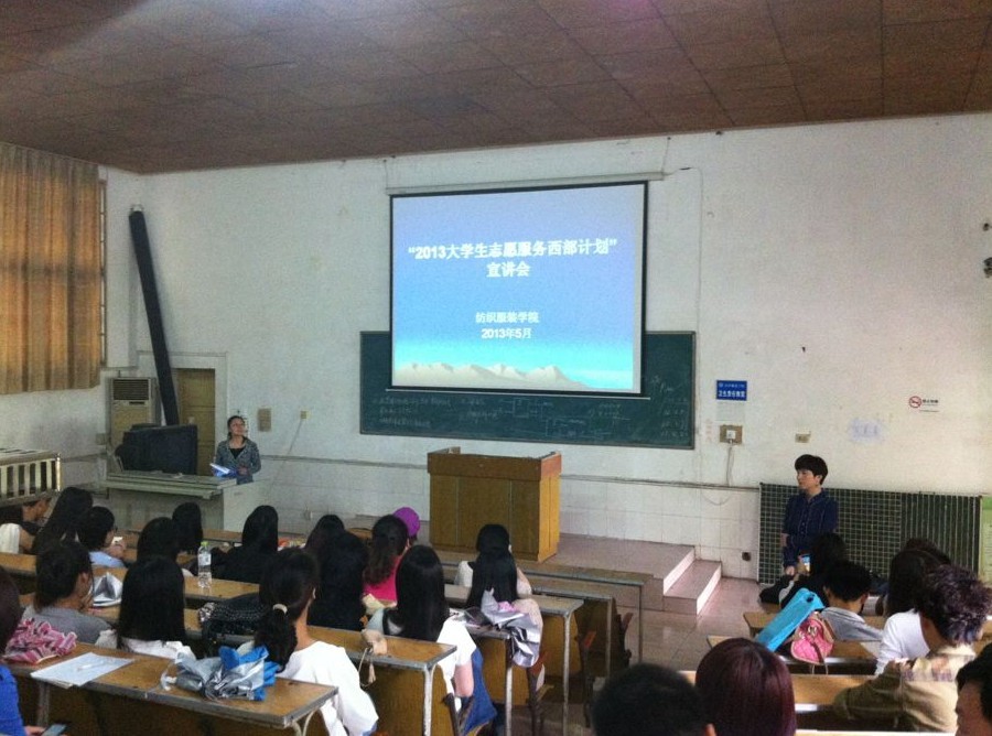 大会首先播放了西部计划宣传片,宣传片介绍了近年来服务于西部的优秀老员工志愿者的优秀事迹,他们当中既有普通的乡村医生,也有三尺讲台上的老师,他们放弃了大都市的繁华与优越的工作环境,义无反顾地选择留在了西部,留在了基层,奉献自己的青春和热情。随后,尹湘鹏老师宣读了关于做好2013年老员工志愿服务西部计划志愿者招募工作的通知,她号召广大应届毕业生向西部计划优秀志愿者学习,投身西部建设,为自己的青春添上浓墨重彩的一笔。