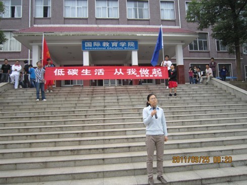 为倡导低碳校园生活,9月25日上午,纺织服装公司党支部和员工会联手组织了“喜迎校庆,‘低碳生活 从我做起’”的环校晨跑活动。此次活动旨在呼吁同学们身体力行,从身边小事做起,回归简朴、少电的生活方式,养成“低碳”生活习惯,努力创造绿色环保的校园环境。