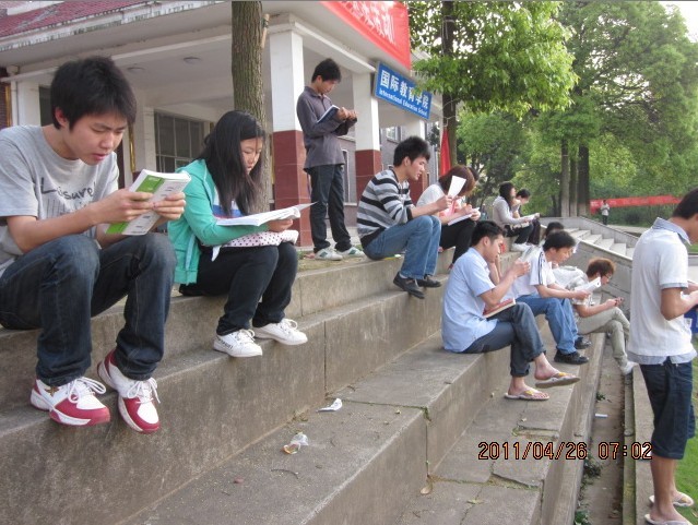 在英语四六级考试渐成必要的今天,伴随公务员与研究生考试的升温,湖工的学习氛围也越来越浓。每天还未到早签到时间,红楼前面就已经有一群朝气蓬勃的青年男女在大声诵读着英语,他们的朗朗专注为这清晨宁静的校园注入了一抹亮色,其中不少就是来自纺工0902班的员工。