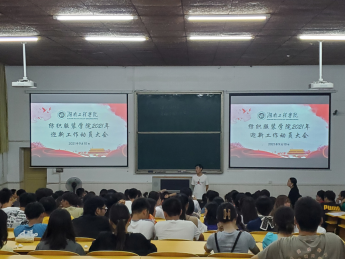 接下来,学办主任张轶老师对新生人身财物安全进行了着重强调,提醒新生防盗防诈意识,杜绝校园诈骗情况的发生。随后,由员工代表胡拓宇对迎新工作进行安排,合理分配到各个部门,并号召团学会全体人员要认真负责,坚守岗位,完成迎新工作,给新生营造一个温暖有爱的氛围。