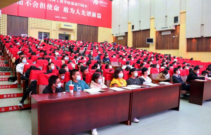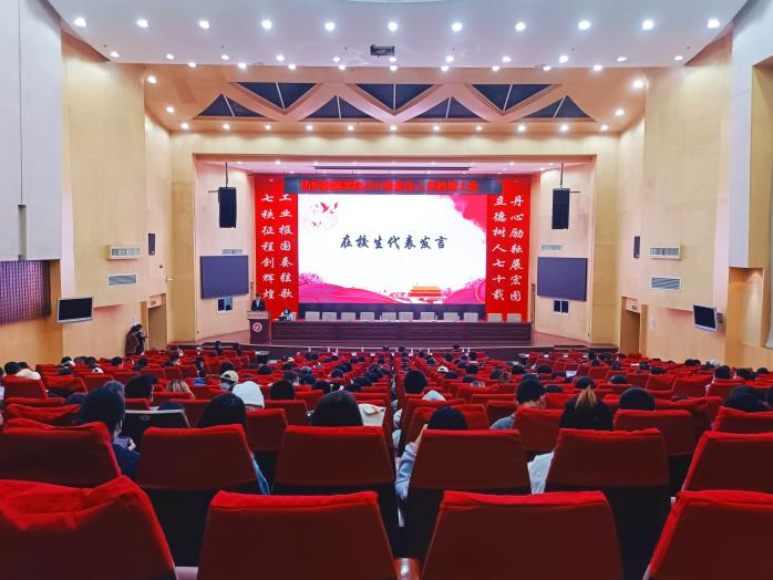 此后,由在校生代表纺织工程1901班胡拓宇给新生们分享了他的老员工活与大学经验,紧接着由来自服装表演2101班的新生代表王永恒发言,他的发言精促有力,激情饱满,让我们感受到了青春的热情与活力。掌声过后,也迎来了本次大会的最后一项议程。全体起立,齐唱校歌,唱出了他们对之后老员工活的热切期盼以及对湖工那满腔的热爱。至此,2021年402永利集团新生入学教育大会圆满结束。