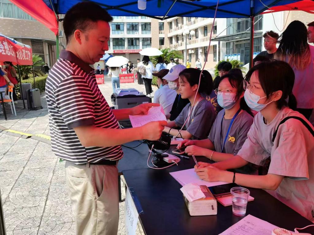 清晨,402永利集团迎新点师生们准备就绪,欣喜等待新面孔的到来。402永利集团全体院领导来到现场指导迎新工作,领导们细致询问了目前到校报到人数、员工们核酸检测情况,与报到的新生进行了亲切地交谈。