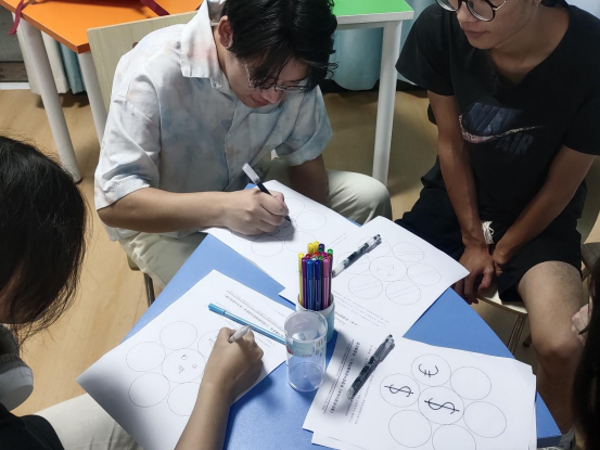 张利芝首先向在场员工介绍本次团体辅导活动目的和意义。紧接着以热身小游戏“快乐拍”进行暖场,大家逐渐放下拘谨,踊跃参与,在一片掌声中活动就此拉开帷幕。为增进同学之间的相互了解,在场人员被随机分成7个小组进行“名字滚雪球”游戏,在名字的不断复述中加深了团队各成员间的集体认同感。在随后进行的“我希望”和“希望曼陀罗”两大主体版块活动中,员工填写“我希望”练习纸并在“曼陀罗”中用各种色彩和图案勾画出自己的理想和目标,并在组内大声反馈、自信分享。