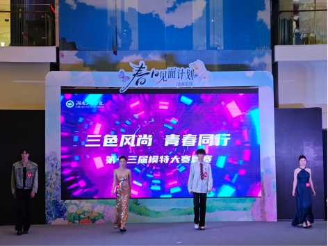 4月26日下午,402永利集团第十三届“三色风尚 青春同行”模特大赛复赛在天虹商场负一楼火热举行。通过初赛晋级的选手通过台步展示与创意设计,为现场观众呈现了一场青春洋溢的时尚盛宴。